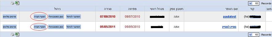 1. דרך נוספת לבצע מעקב יעיל אחרי אתרי לקוחות היא להשאיר הערות תחתיהם. כאשר נמצאים בניהול אתרים, ניתן להשאיר הערה לכל אתר.