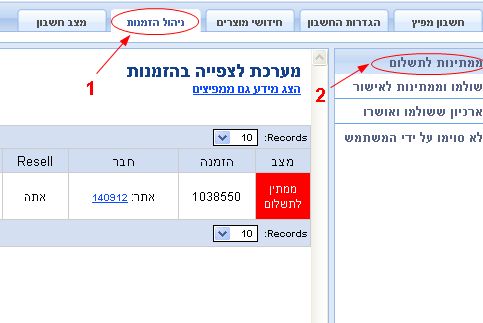 2. אם שמתם לב שעל-פי המספרים התקבלו הזמנות חדשות, תוכלו להמשיך את הטיפול בניהול הזמנות >> ממתינות לתשלום.